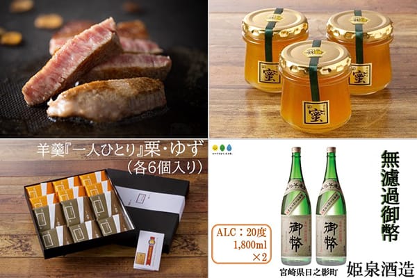 渓谷と豊かな自然に育まれた『高千穂牛』や、日本ミツバチのはちみつが自慢。県内最古の老舗・姫泉酒造は、豊富な展開が特徴です。