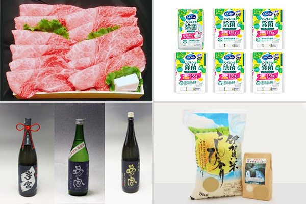 ブランド牛として好評の伊賀牛、お米や地酒、地ビールなど盛りだくさん。毎日のお掃除等に使用可能な日用品類も充実しております。